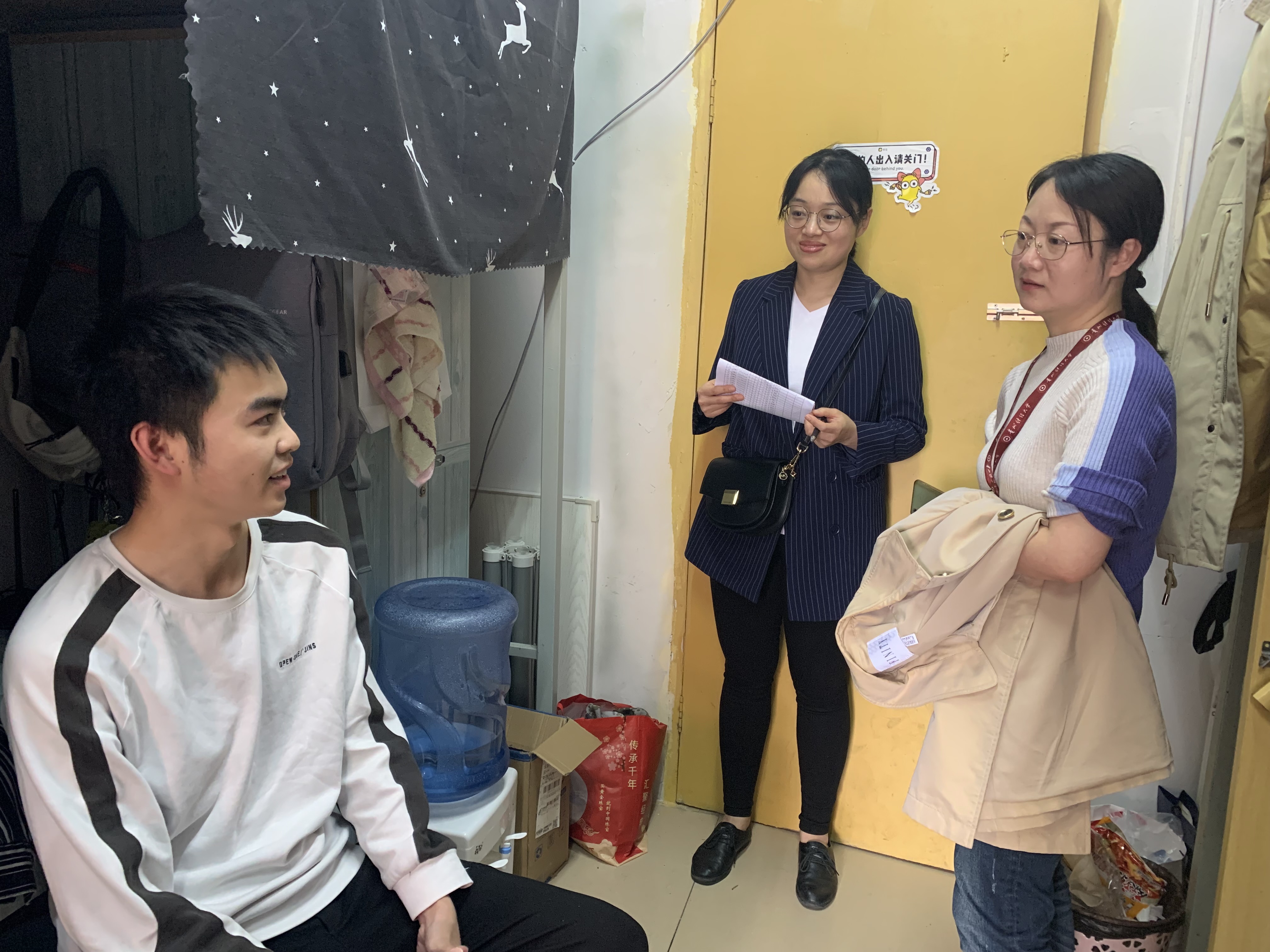 走访过程中,检查小组对学生宿舍的疫情防控、应急处置、消防安全、日常卫生管理等工作进行了全面检查,对存在的安全隐患和问题及时进行了纠正。学院领导与同学们进行了亲切交流,嘱咐大家要严格遵守疫情防控期间校园管理要求和校纪校规,做好疫情防控常态化下的自我管理和个人防护,坚持每日晚点名制度,做好宿舍清洁消毒工作;鼓励同学们养成良好的生活卫生习惯,注意身体健康,加强户外体育锻炼,保持乐观向上的生活状态和积极的心理状态;要求各宿舍长、班长等学生干部要严格落实晚点名零报告制度,协助学院做好宿舍安全管理工作。针对即将毕业的学生,老师们重点与学生交谈了毕业去向和个人的学习及考研情况,嘱咐毕业生一定要认清当前的考研就业形势,更新思想观念,明确个人奋斗目标。
