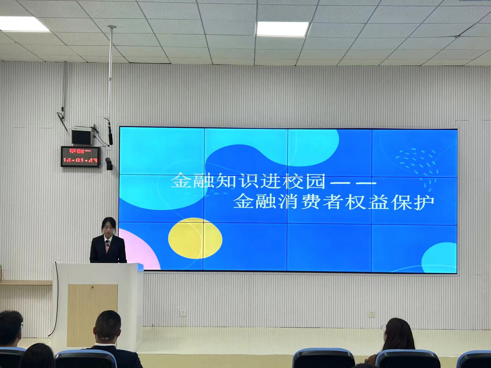 邀请贵阳农商银行花溪支行文艺情老师,在乐学楼202教室举办“金融知识进校园——金融消费者权益保护”讲座。