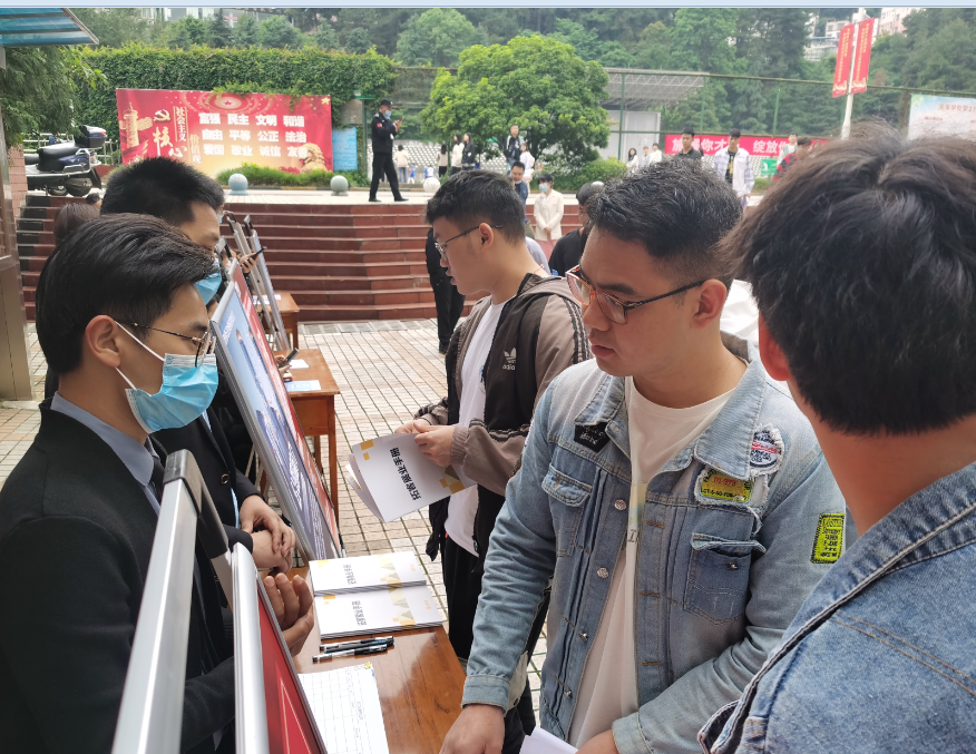 联合云岩区人民政府盐务街街道办事处在鹿冲关校区举办了“以生为本办实事,搭建平台促就业”校园专场招聘会。华创证券有限公司、贵州黔云易付网络科技有限公司等12家用人单位走进校园参加招聘会。