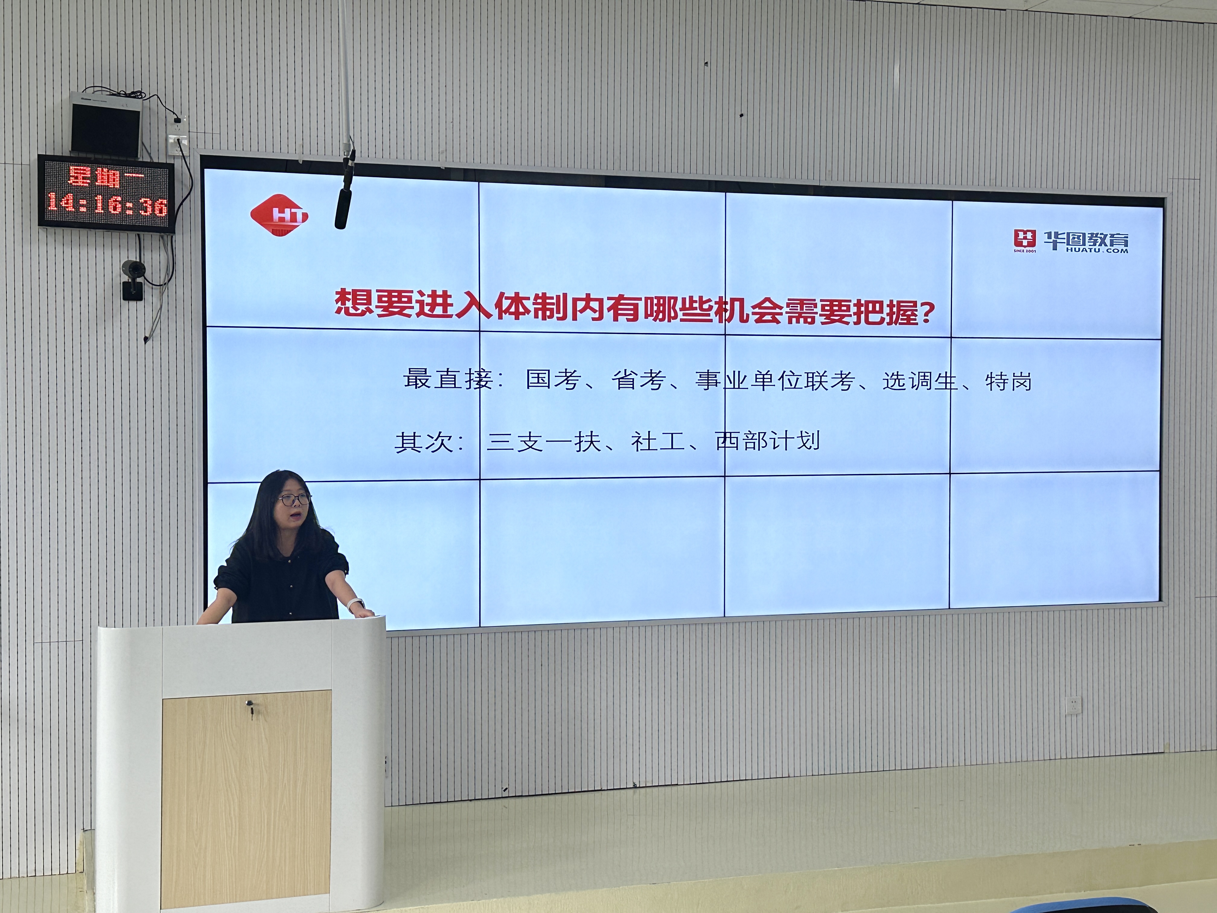 邀请华图教育谢玉丹老师,在乐学楼201教室举办“就业育人——2025公考笔试备考指导”讲座。