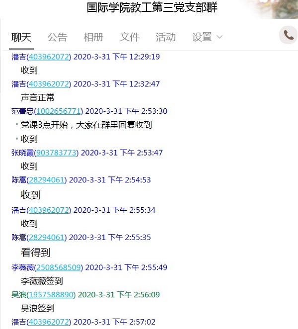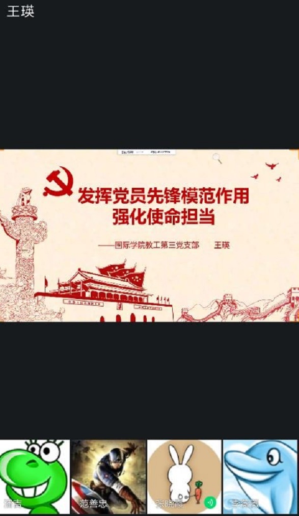 教工第三党支部利用线上会议室开展了2020年第一季度网络党课学习,支部书记王瑛以“发挥党员先锋模范作用,强化使命担当”为题作专题党课讲授,支部全体党员进行了线上集中学习。