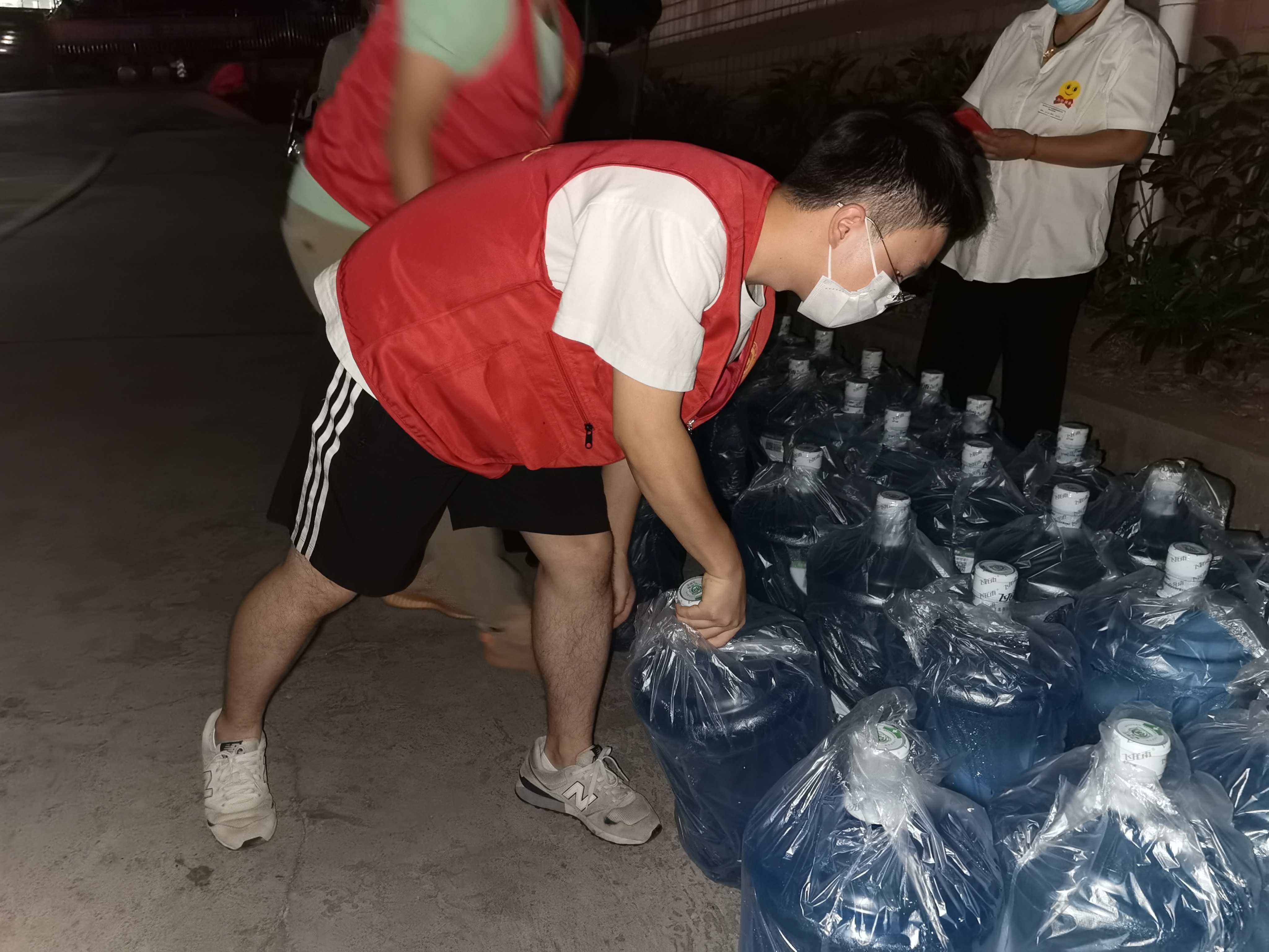 学生五支部党员方云龙带领支部成员,主动请缨,协助运水。大家明白,在疫情防控物资运送紧张的情况下,能有几百桶矿泉水是多么不容易,早一点行动,就能早一点解决同学们的燃眉之“渴”。到晚上10:30,盼望已久的水来了,支部党员冲上前,一桶一桶的从车上抗下来,送往一栋栋宿舍楼,几十斤的水,十几栋宿舍,尽管累的腰酸背痛,但他们硬是咬牙坚持着,直到送完最后一桶水。