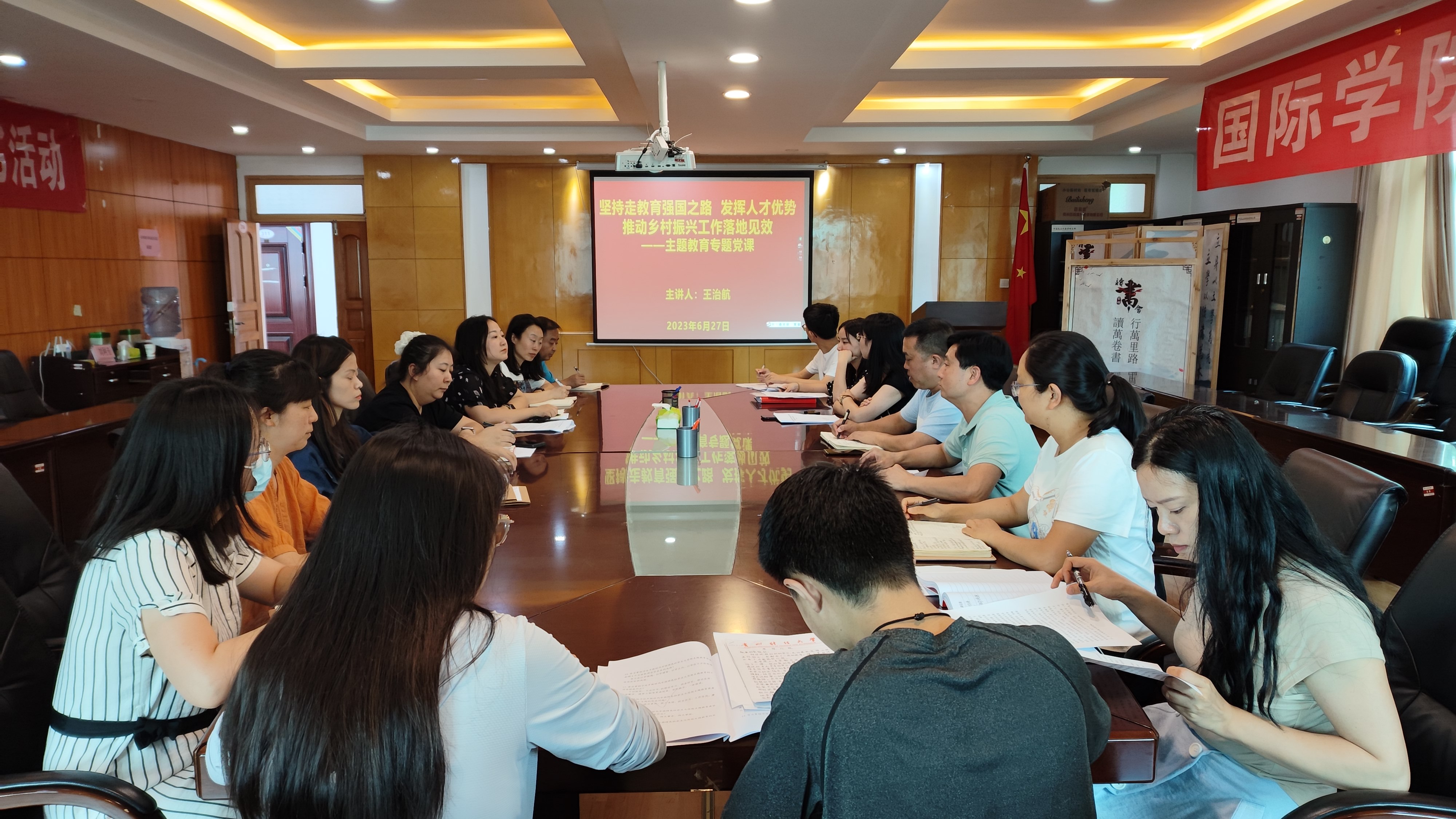 党委书记王治航在鹿冲关校区行政楼三楼会议室为所在支部、联系支部以及分管科室上题为“坚持走教育强国之路 发挥人才优势 推动乡村振兴工作落地见效”的专题党课。校党委主题教育第一督导组副组长吴长勇到会指导。无码漫画