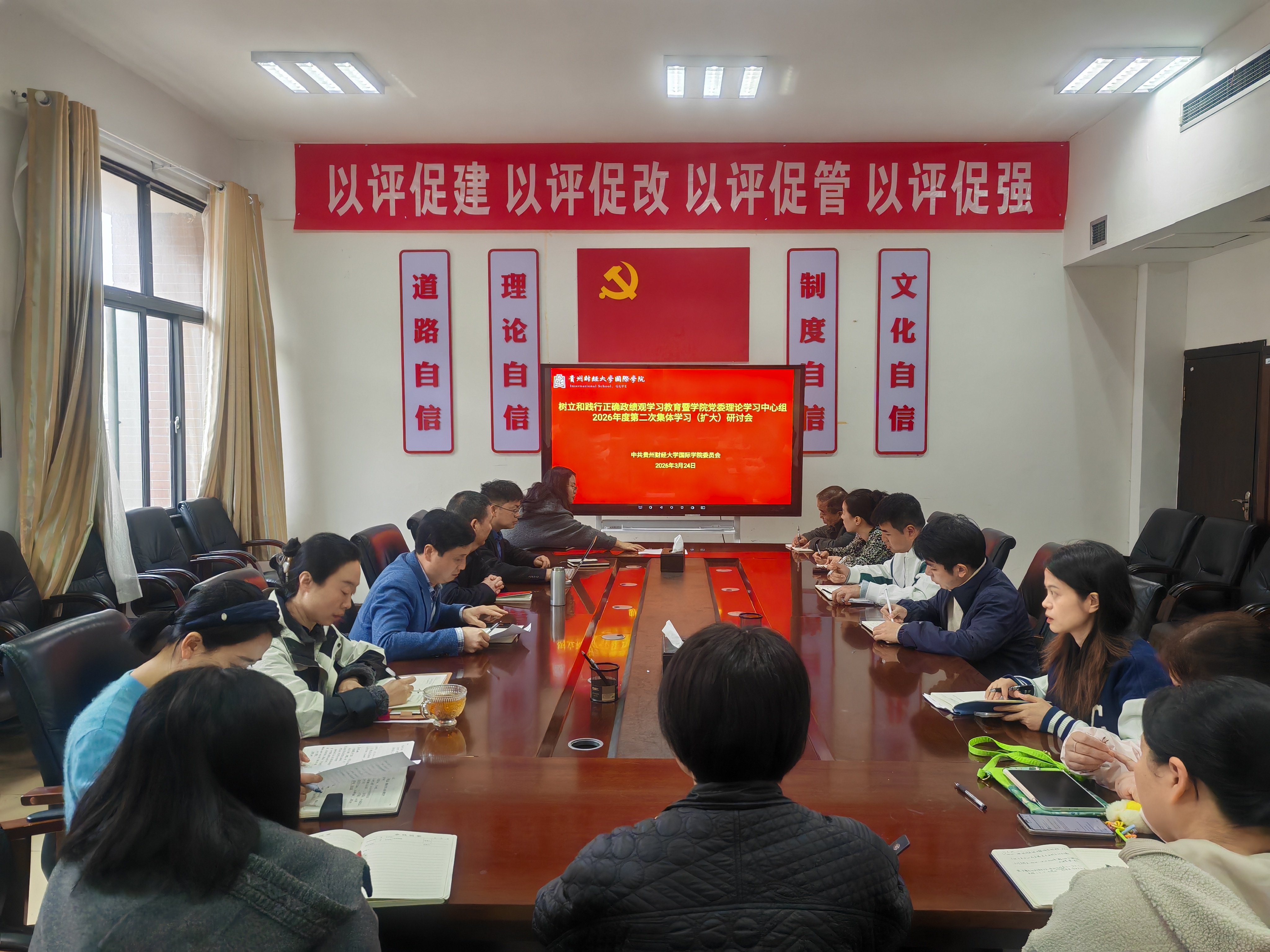 会议要求,要紧密结合学院国际化办学实际,将树立和践行正确政绩观融入人才培养、社会服务、文化传承创新和国际交流合作全过程。在人才培养上,要始终坚持立德树人根本任务,聚焦培养具有全球视野、中国情怀、跨文化沟通能力的高素质国际化人才。学院领导班子成员要带头示范,把正确政绩观落实到具体工作中,多做打基础、利长远、惠师生的实事,以“功成不必在我,功成必定有我”的境界,推动学院各项事业高质量发展,以优异成绩迎接学校新一轮发展机遇。