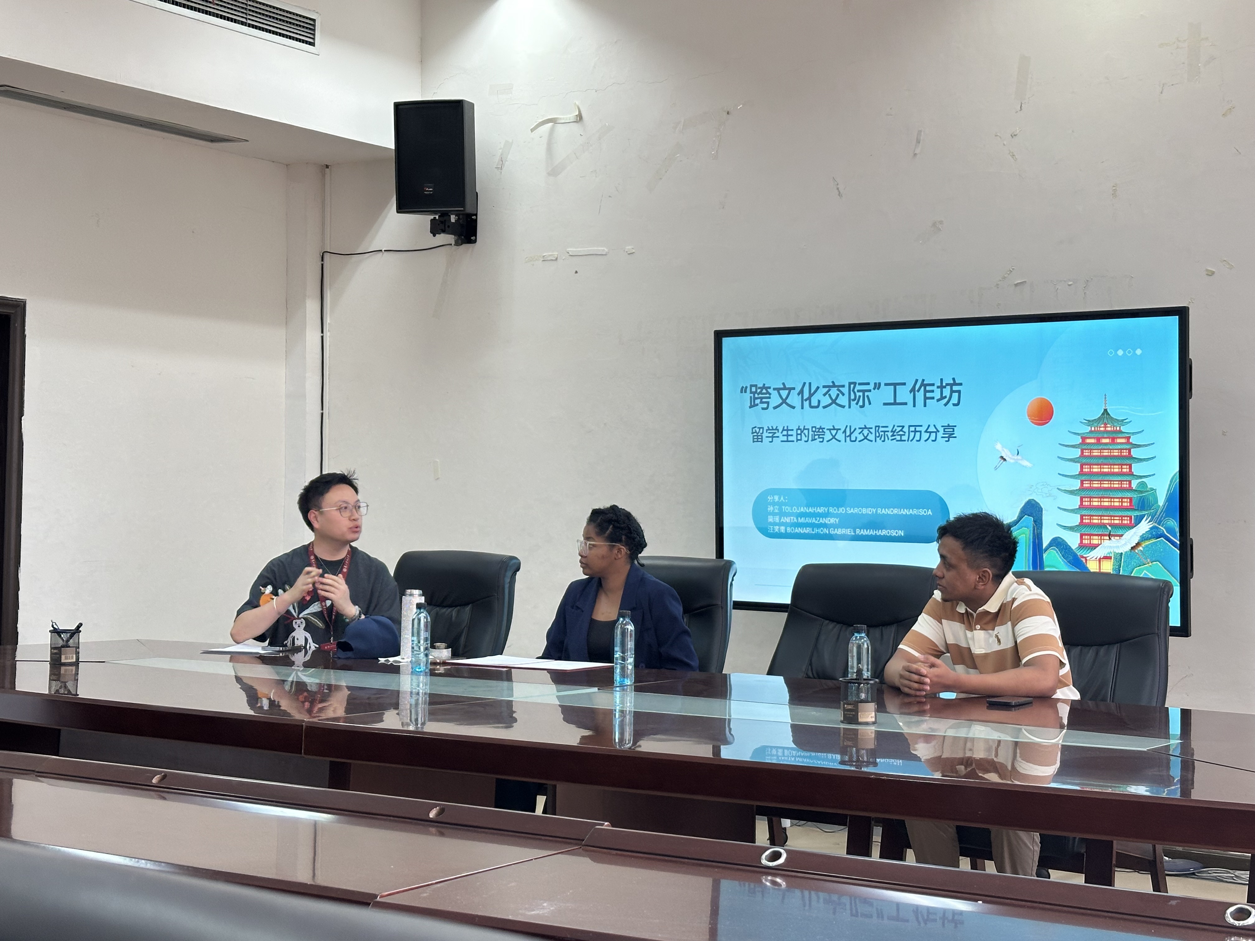 (无码漫画 唐凤菱 图文报道)5月13日下午,无码漫画 2025年“跨文化交际”工作坊第三讲在正德楼301会议室开展,工作坊邀请无码漫画 文学院来自马达加斯加的国际中文教育在读硕士简瑶同学和孙立同学,共同探讨跨文化交际中的有趣故事与感悟,无码漫画 60余名学生入党积极分子、学生党员参加。活动由无码漫画 项目科邱俊宁老师主持。