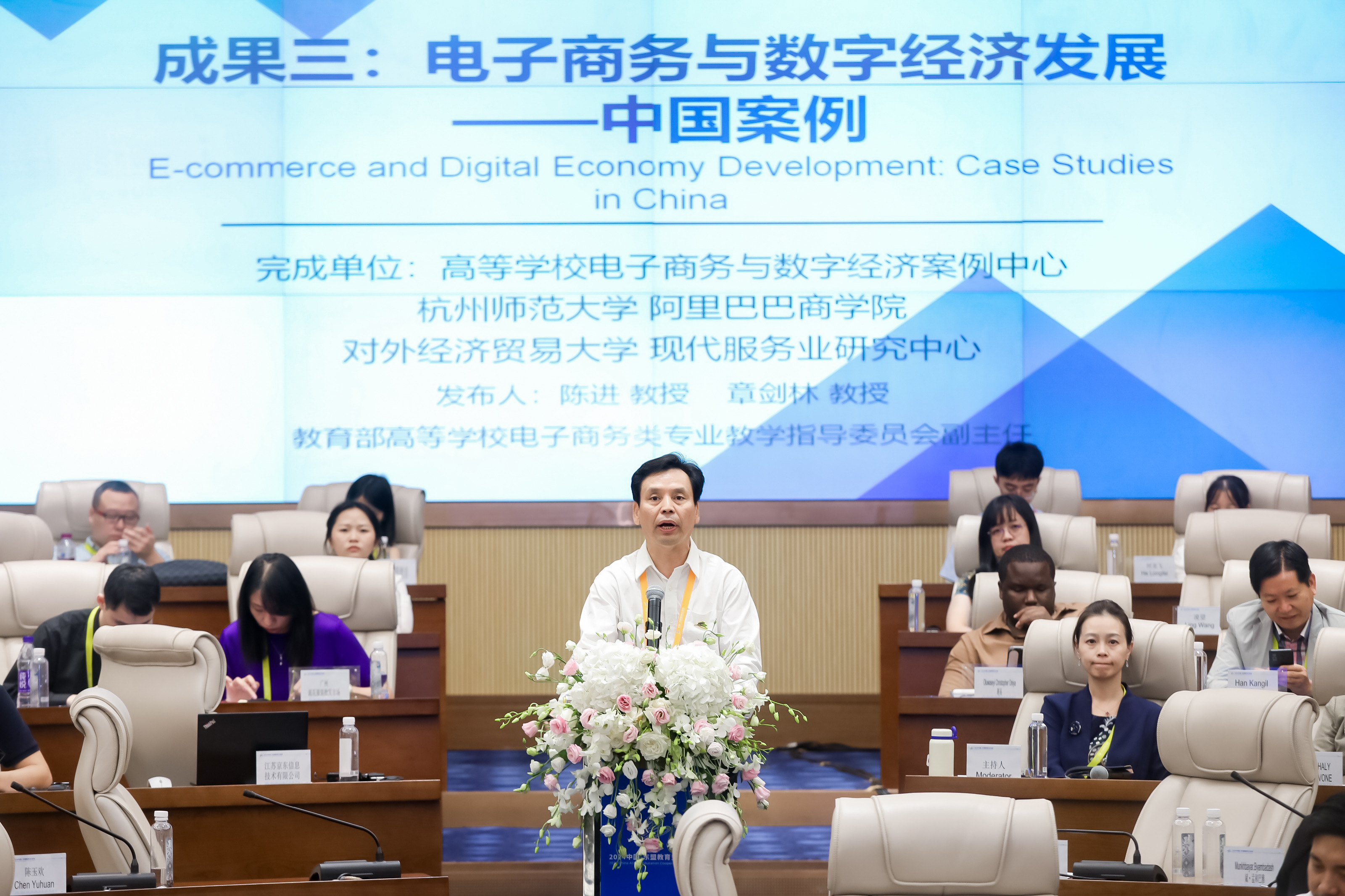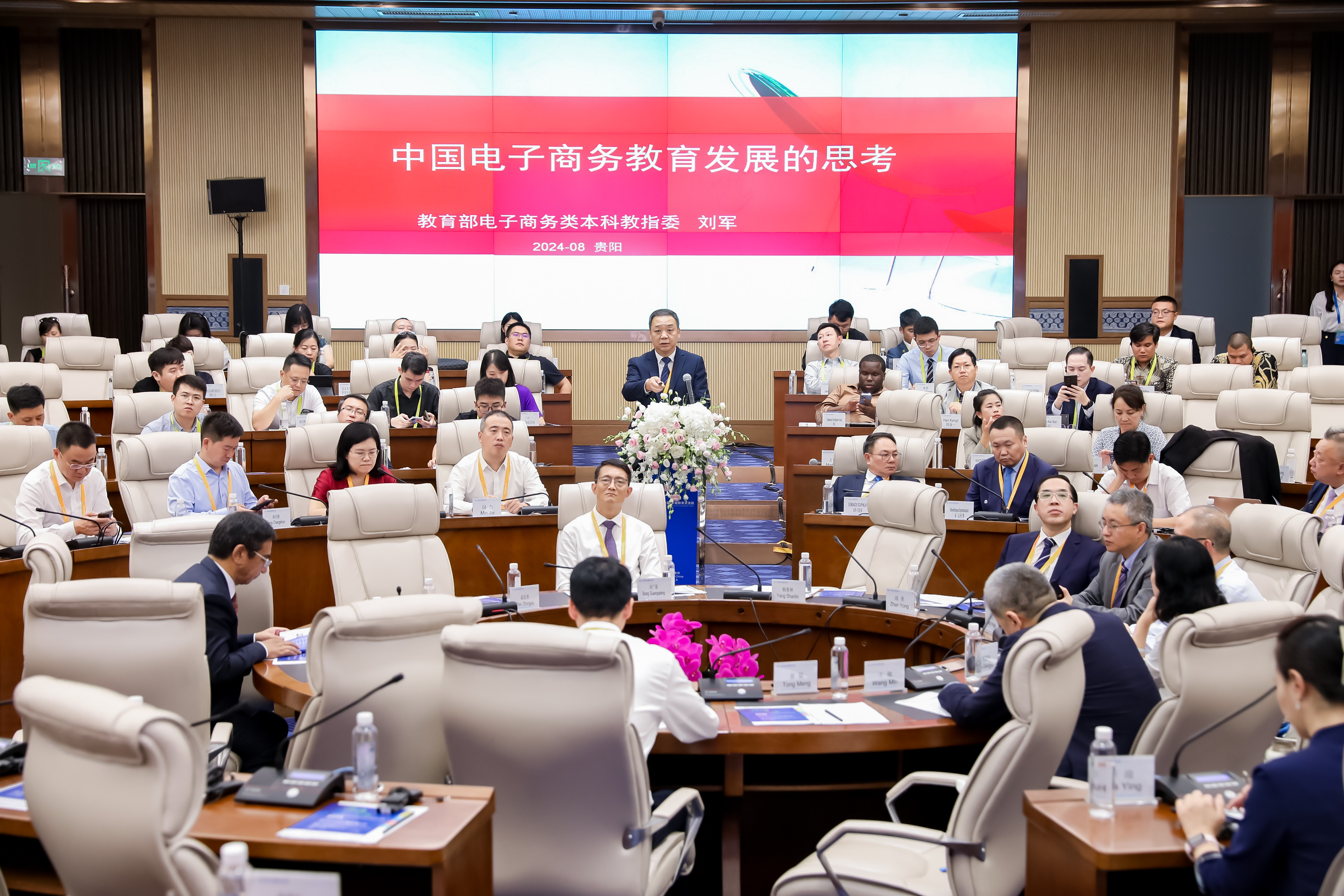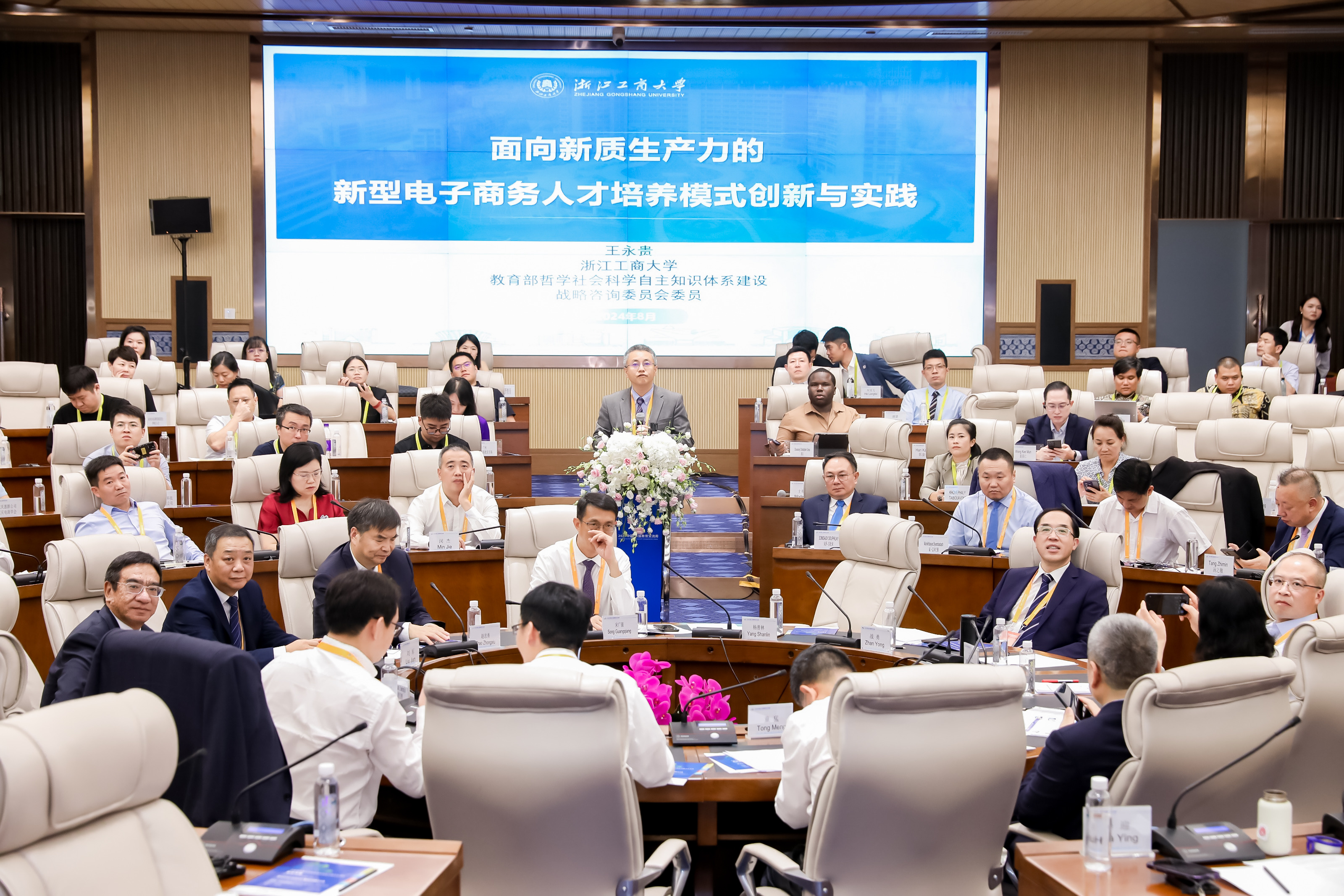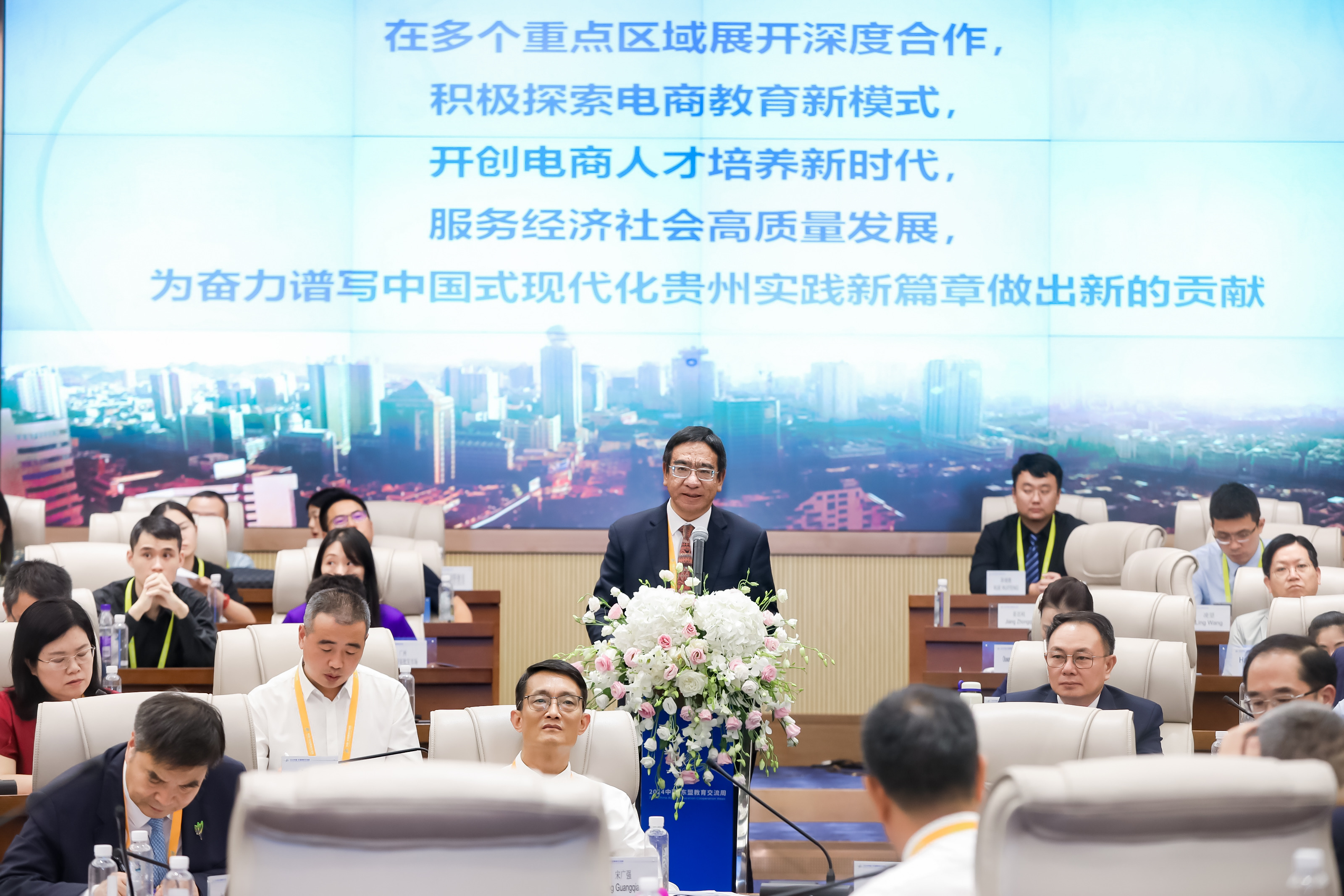 校长缪坤和分别作了题为《跨境电商发展与人才培养》、《协同共建,推动全球电商教育事业高质量发展》、《中国电子商务教育发展的思考》、《面向新质生产力的新型电子商务人才培养模式创新与实践》、《携手共创适应全球商业格局变革趋势的高等财经教育》、《适应新质生产力发展要求 培养高质量电商人才》、《探索电商教育新模式开创人才培养新时代 奋力谱写中国式现代化贵州实践新篇章》的报告。