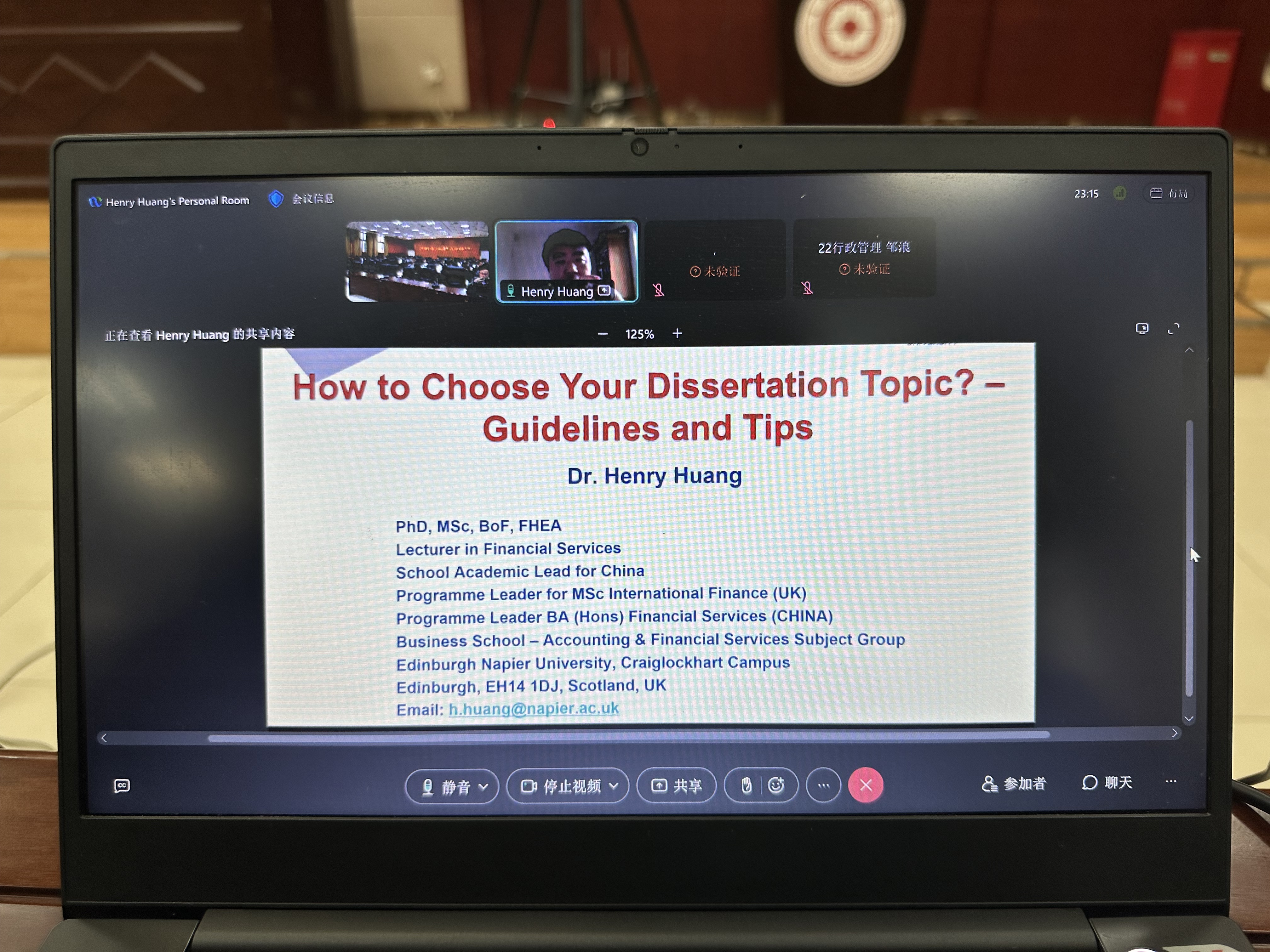 邓莹 图文报道)5月8日晚,英国爱丁堡龙比亚大学教师、中国区学术带头人、国际金融理学硕士(英国)和金融服务(荣誉)文学学士(中国)项目负责人,伦敦银行与金融学院外部审查员黄享利博士应邀作题为“国外高校本科学术论文写作”的讲座。本次讲座以线上线下同步开展,学校150余名师生参加,讲座由无码漫画