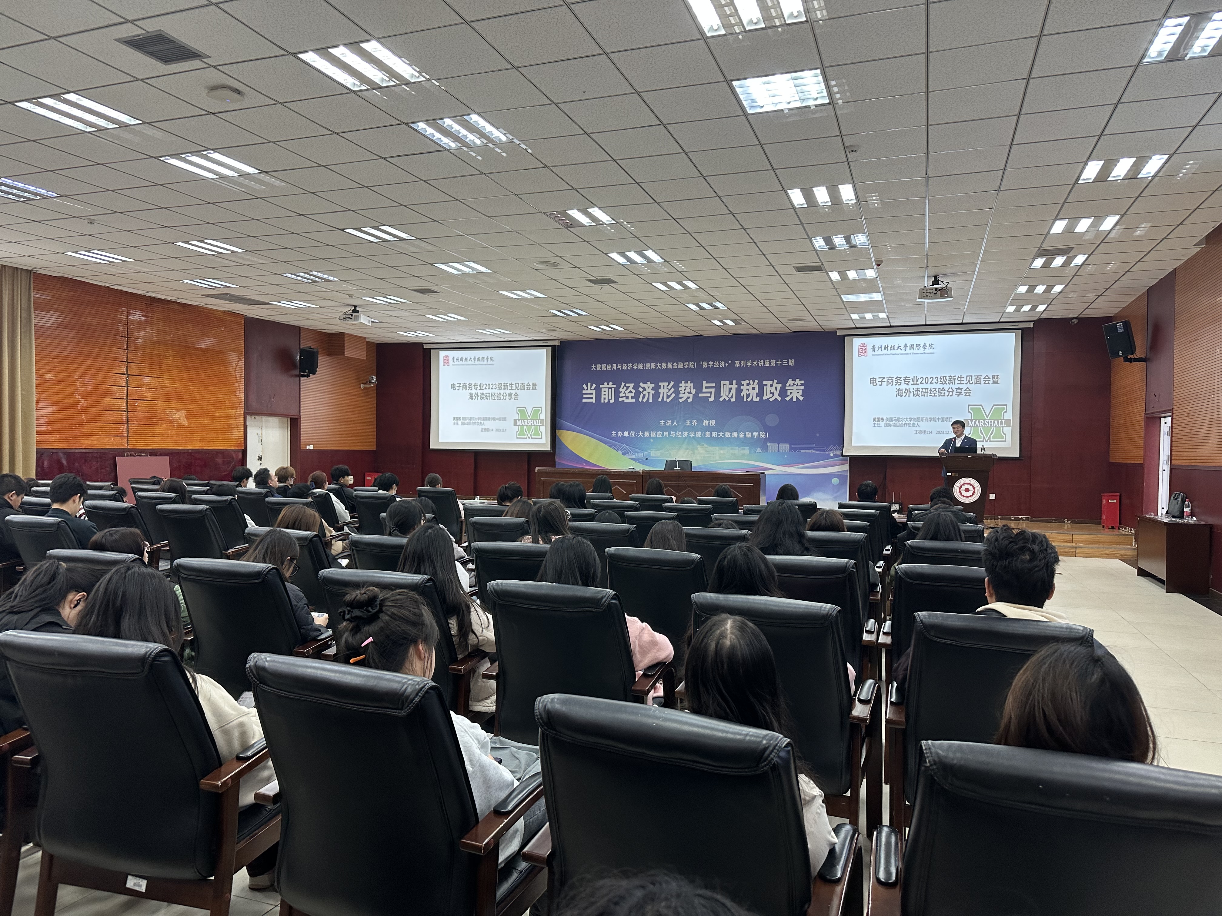 电子商务专业大二、大三40名学生代表参加了交流会,黄国栋与同学展开了热烈互动。他以轻松幽默的方式分享了自己在海外留学期间的一些奇闻轶事,引起了同学们的极大兴趣。通过生动的故事,他传达了出国留学的各种注意事项,包括如何适应当地生活、如何应对文化差异等。此外,他还就同学们关心的出国留学与考研的时间成本和经济成本进行了详细的分析和计算。