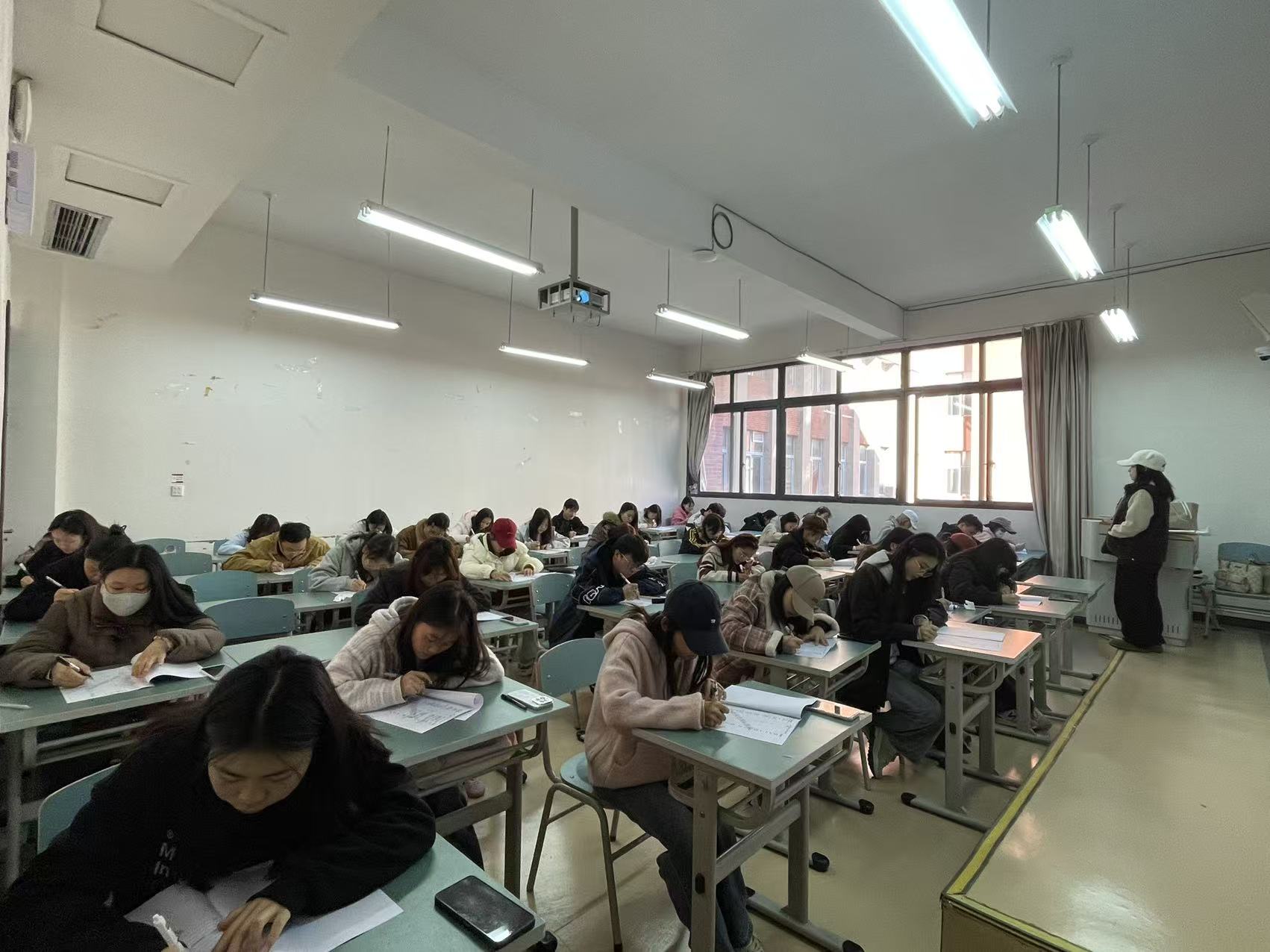 比赛采用“线上+线下”双轨模式开展,分为线上打卡、线下考试两个阶段。前期通过线上每日单词打卡,通过智能题库系统随机抽取四六级高频词汇、易混词汇及情景应用题目,考查学生词汇掌握的广度与精准度。比赛当天,以线下“中英互译”形式进行,既考验学生的词汇储备速度,又注重考查词汇在实际语境中的运用能力,充分激发了学生的学习兴趣与竞争意识。本场比赛让同学们发现了自己词汇积累的薄弱点,也学会了结合语境记单词的方法,对即将到来的四六级考试很有帮助。
